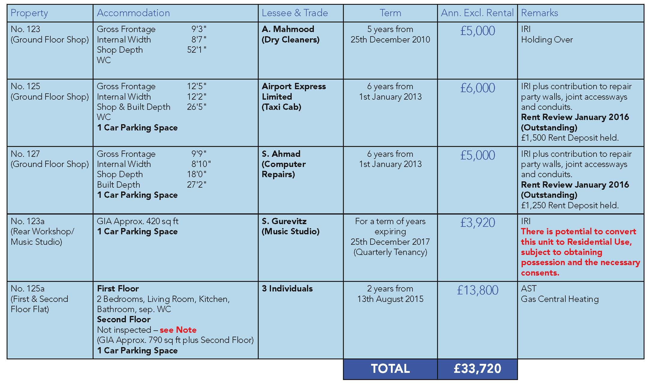 A mid terraced building comprising 3 Ground Floor Shops with separate rear access to a Self-Contained Flat on the first and second floors (see Note). There is a rear single storey Workshop/Music Studio which is accessed via a service road and also parking for 4 cars.