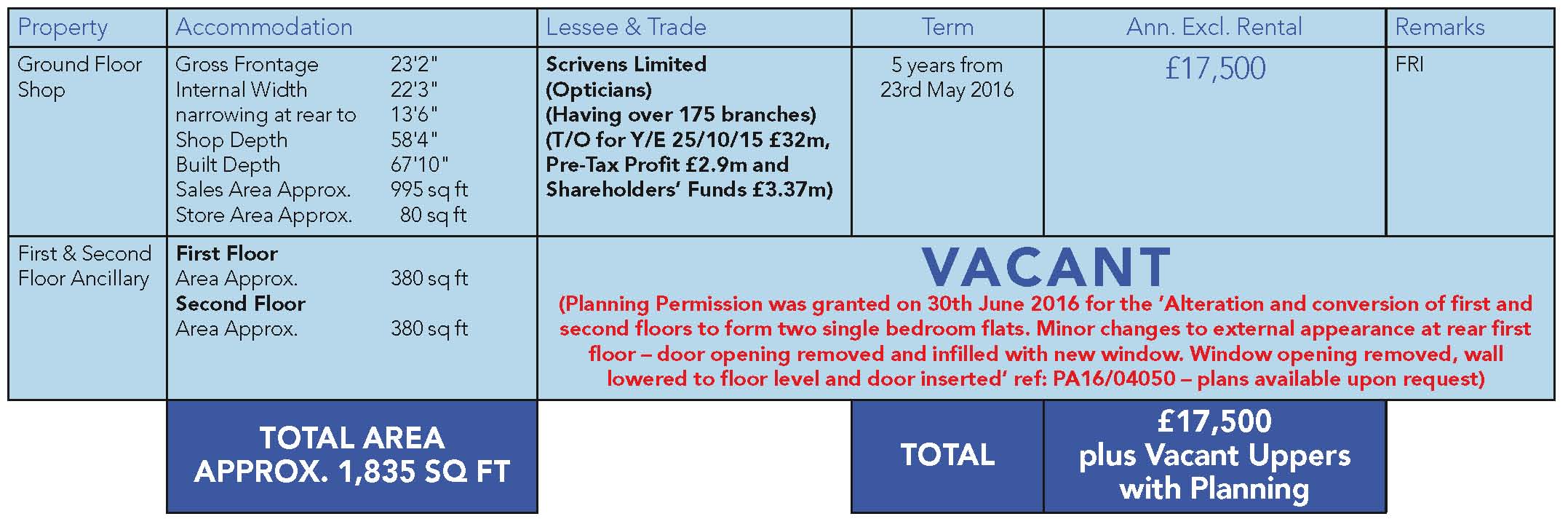 An attractive mid terraced building comprising a Deep Ground Floor Shop. In addition, there is Ancillary Accommodation on the first and second floors which will require a new access from the rear in line with the Planning Consent granted.