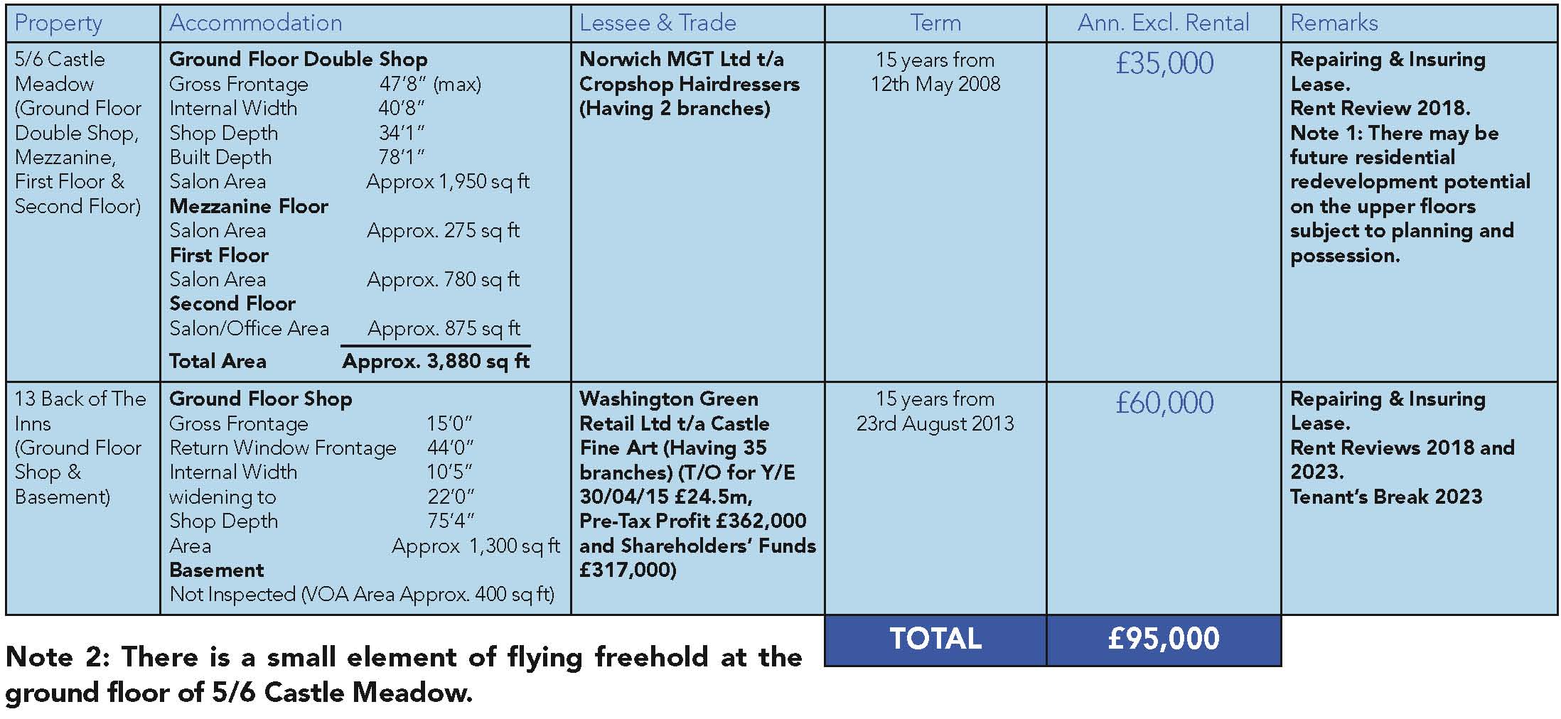 No. 5/6 Castle Meadow comprises a Deep Ground Floor Double Shop Unit partly running above No. 13 Back of The Inns (Castle Fine Art) with internal and separate front entrance to a Hairdresser Training Academy on mezzanine, first and second floor levels.