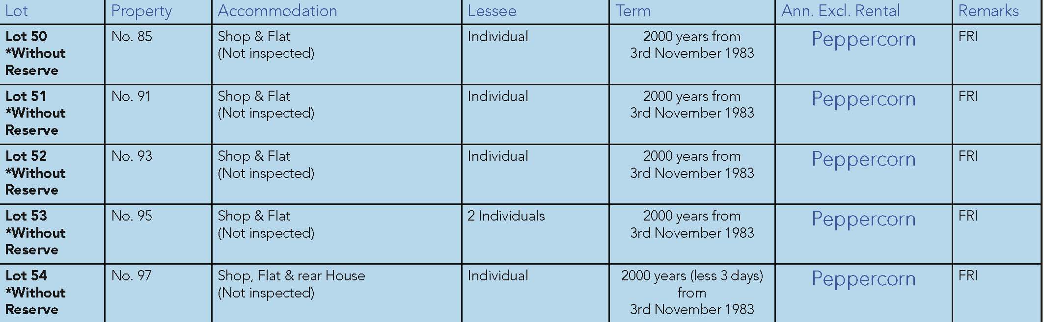 Note 1: The Freeholder insures and recovers the premium from the head-lessees - Refer to legal pack for sums insured and premiums.