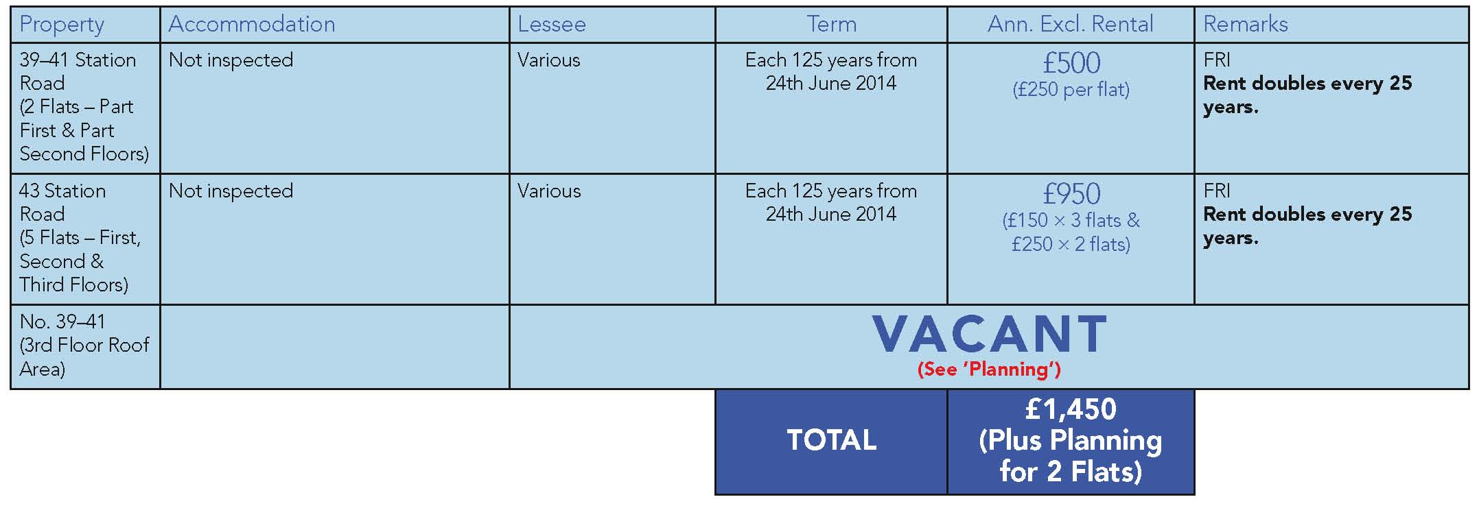 No. 39-41 Station Road: Leasehold for a term of 999 years from 16th January 2014 at a Peppercorn ground rent.