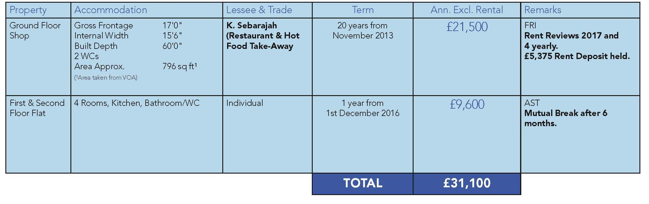 A mid terrace building comprising a Ground Floor Shop (A3 & A5 Use) with separate rear access to a Self-Contained Flat on the first and second floors. In addition, the property benefits from the use of a rear service road allowing vehicular access.