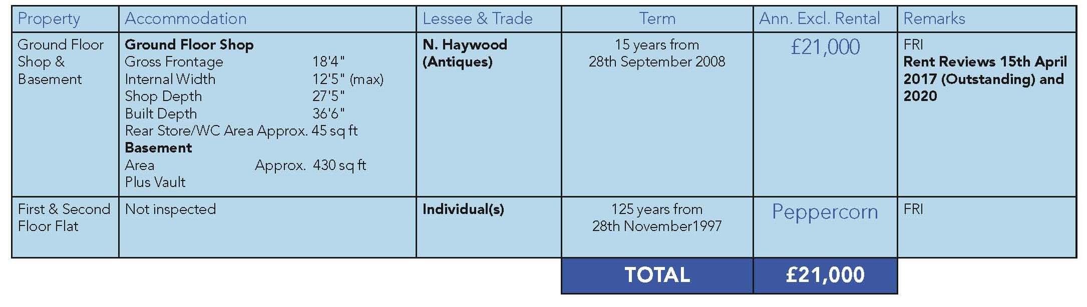 A mid terraced building comprising a Ground Floor Shop and Basement with a small rear courtyard. In addition, there is separate front access to a Self-Contained Flat on the first and second floors.
