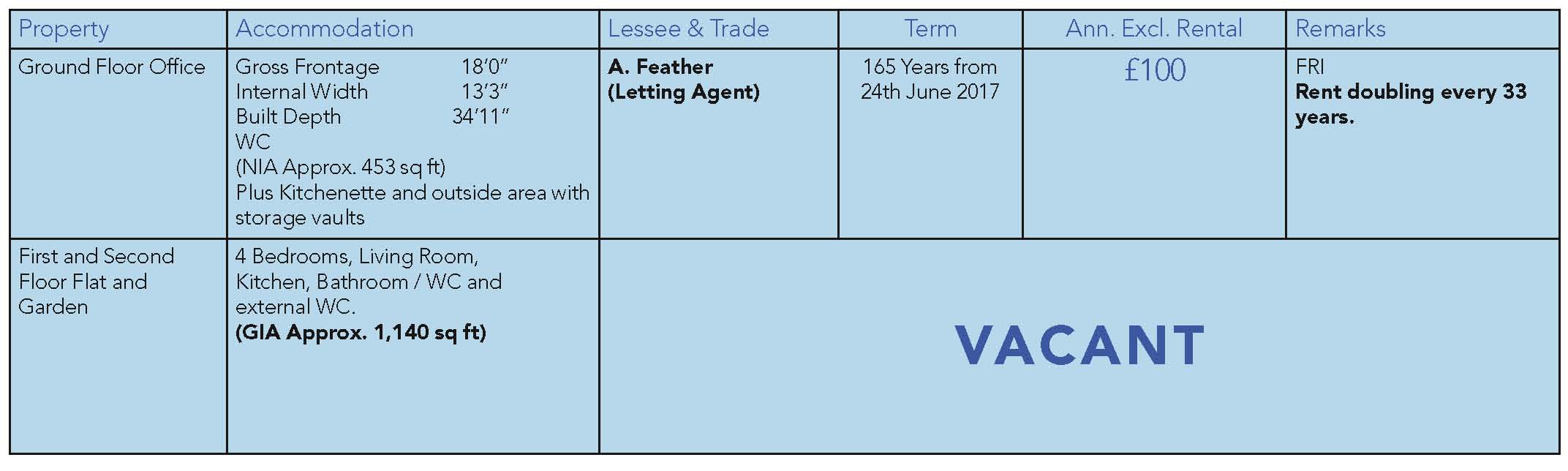 A terraced building comprising a Ground Floor Office with separate front access to a Large Self-Contained Flat on the first and second floors plus potential to build into the loft space. There is also an enclosed Rear Garden.