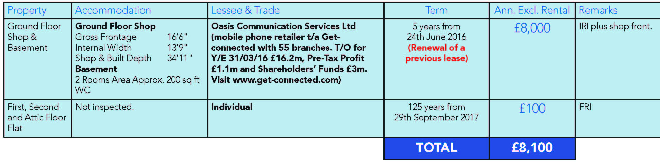 A mid terrace building comprising a Ground Floor Shop with separate rear access to a Basement and a Self-Contained Flat on the first, second and attic floors.