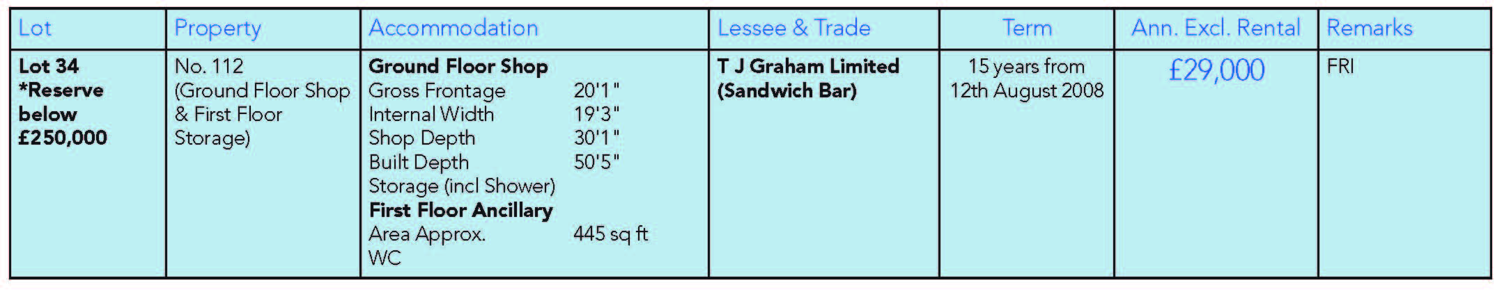 No. 112 - A Ground Floor Shop with internal access to Storage Accommodation (previously used as a Flat) on the first floor.