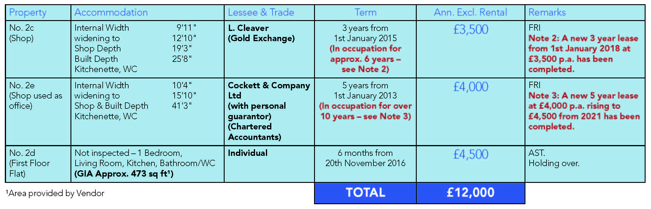 A mid terraced building comprising 2 Ground Floor Shops (one used as an office) with separate front access to a Self-Contained Flat on the first floor (see Note 1).