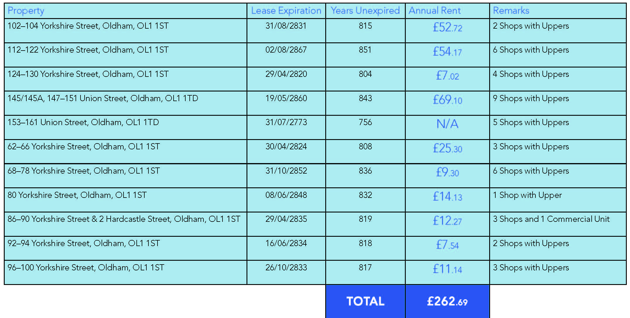 A portfolio of Freehold Commercial Ground Rents all let on 999 year leases, comprising of over 30 shops with upper parts within the same vicinity. This portfolio includes additional commercial units in the same postcode.