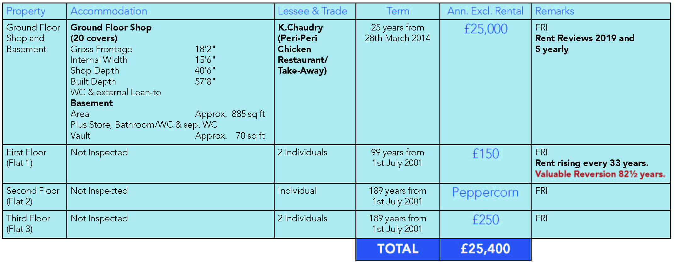 A mid terrace building comprising a Ground Floor Shop and Basement with separate rear access via a service road to 3 Self-Contained Flats on the upper floors.