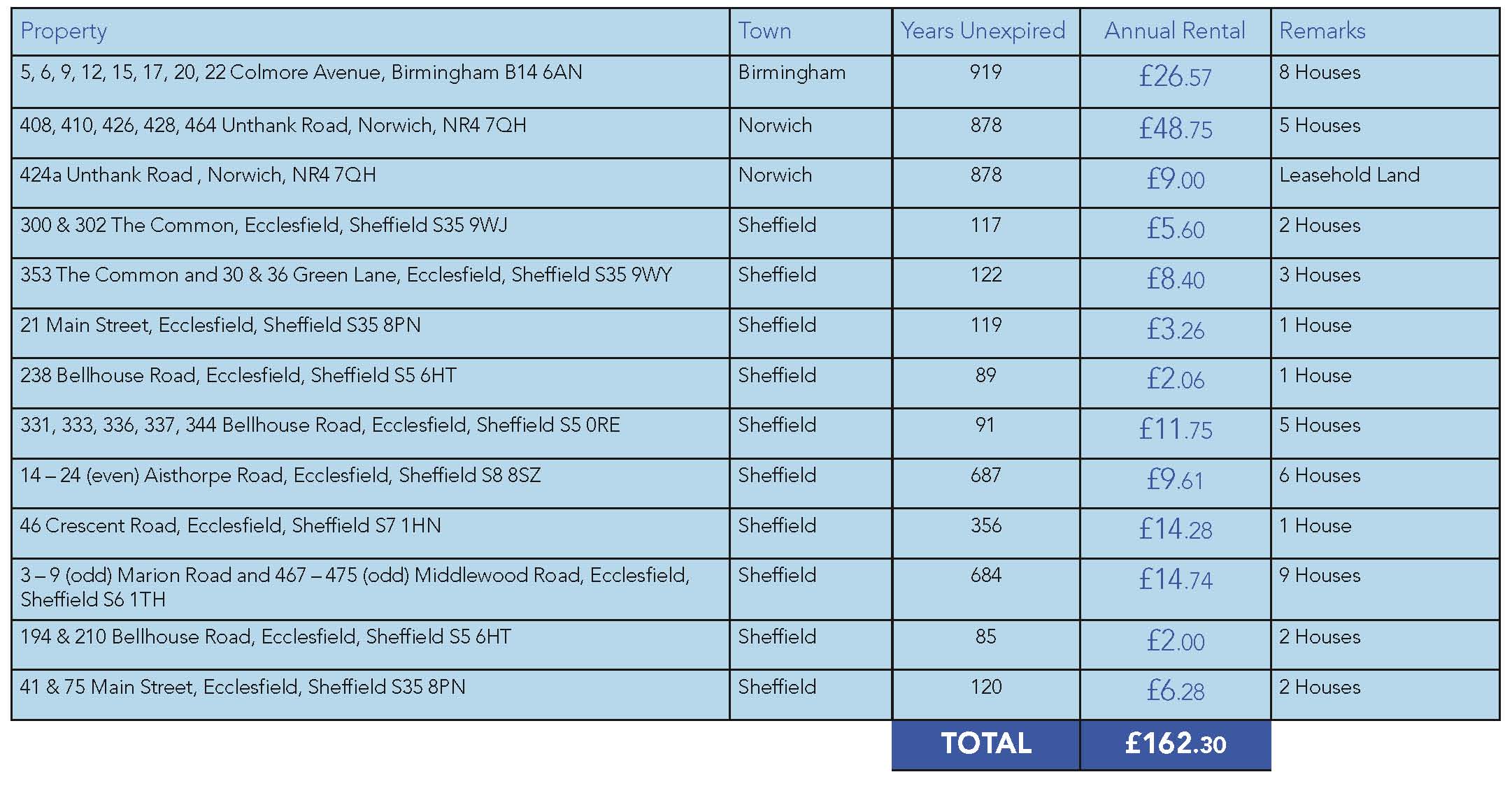 A portfolio of Ground Rents all let on 999 year leases, comprising of 46 Houses and Leasehold Land.