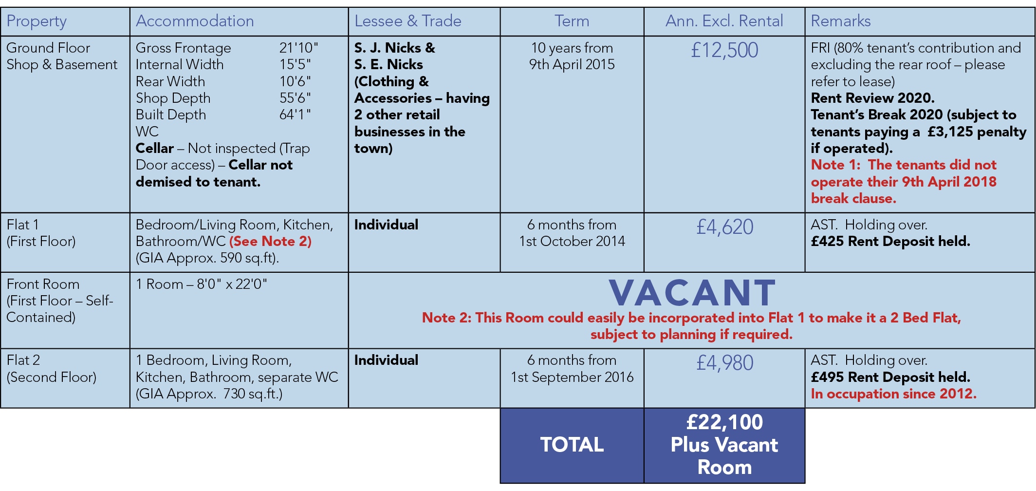 Note 3: The rents on the flats have not been increased for some years.