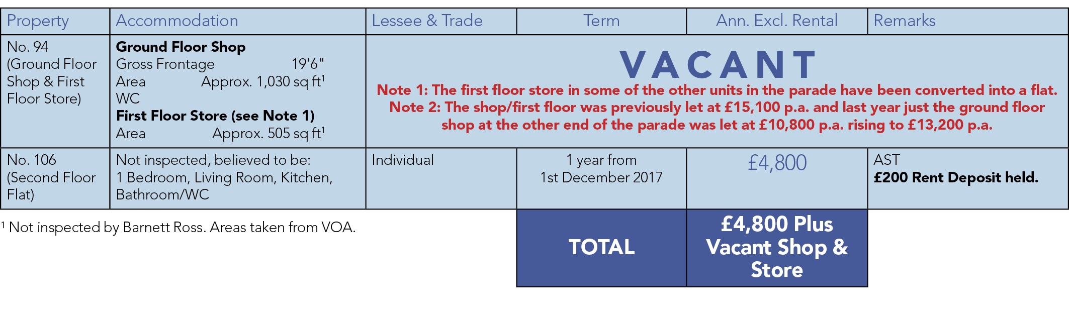 A mid terraced building comprising a Ground Floor Shop with internal access to Storage on the first floor (see Note 1) and separate rear access to a Self-Contained Flat on the second floor.
