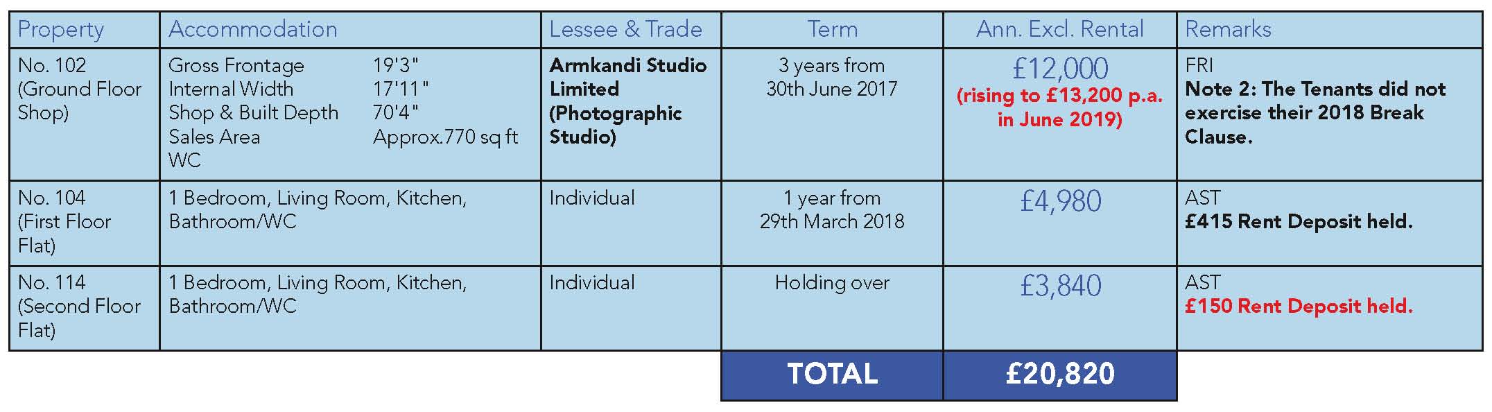 Note 1: The adjoining building comprising a vacant shop and 2 flats let on ASTs sold for £170,000 in March 2018.