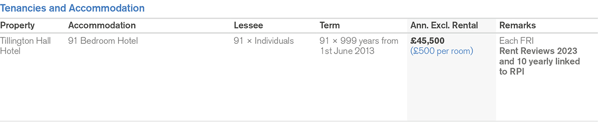 Note 1: The Property is subject to a hotel management agreement with operation of the hotel being under the Best Western brand. In practice, the freeholder receives the ground rent as a single payment half yearly via the Operational Company referred to in the leases.