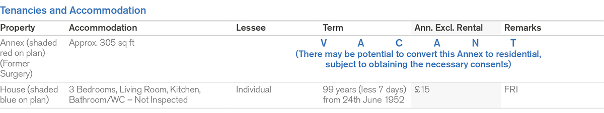 A corner site comprising a Vacant Annex (Former Surgery - shaded red on the plan) together with an adjoining 3 Bed House (shaded blue on the plan).