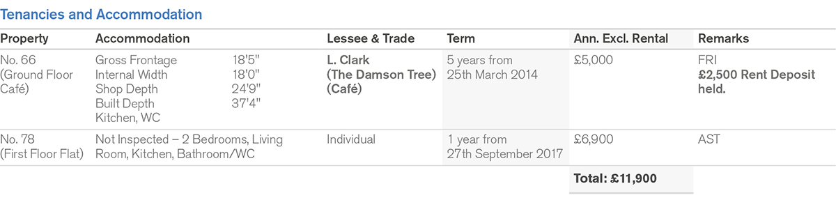 A mid terrace building comprising a Ground Floor Café with separate rear access to a Self-Contained 2 Bed Flat on the first floor. In addition, there is a Garage to the rear, as well as use of a rear service road for unloading.