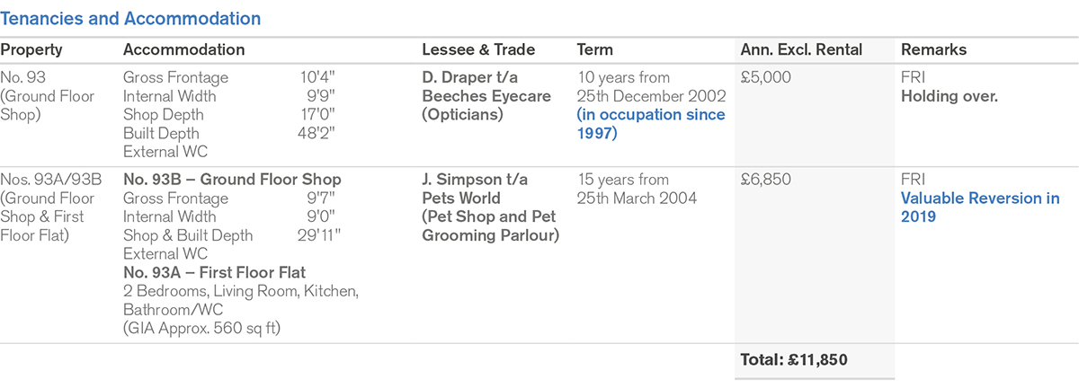 A mid-terrace building comprising 2 Ground Floor Shops with separate rear access via a service road to a Self-Contained Flat at first floor level which includes gas central heating and uPVC double glazing. The property includes a Rear Yard that has parking for 1 car and a timber framed Rear Storage Area.