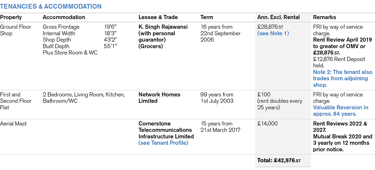 Note 1: The rent is currently £24,893.60 until 1st April 2019 and the Vendor will make up the rent shortfall on completion.