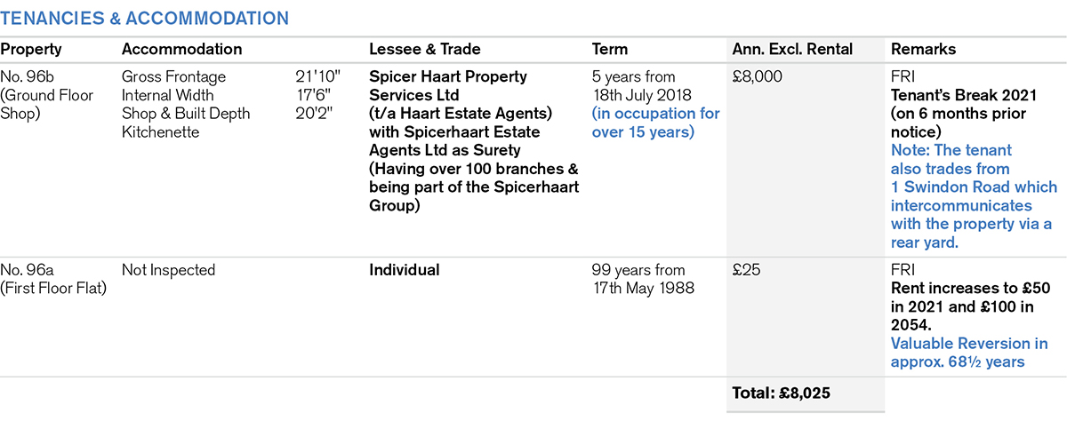 Located close to the junction with Swindon Road, within this local parade, adjacent to a branch of Allen & Harris, within 300 yards of Aldi and Home Bargains and serving the surrounding residential area.