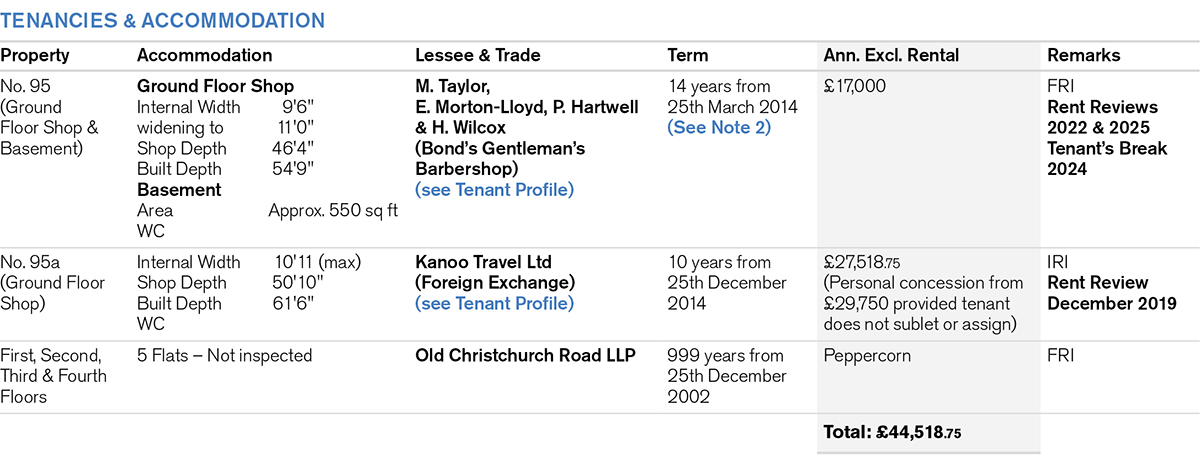 Note 2: No. 95 (Shop & Basement) - A Deed of Variation and Extension was completed on 21st June 2018 extending the Lease for a further period of 8 years from 25th March 2020 to 25th March 2028 and requiring the Tenants to fully renovate the basement area of the Premises (which spans both shops) to at least the same standard as the ground floor for use as a men's grooming business.