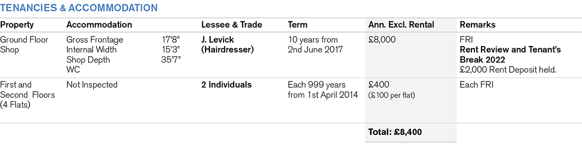 A terraced property comprising a Ground Floor Shop with separate side access to 4 Self-Contained Flats on two upper floors.