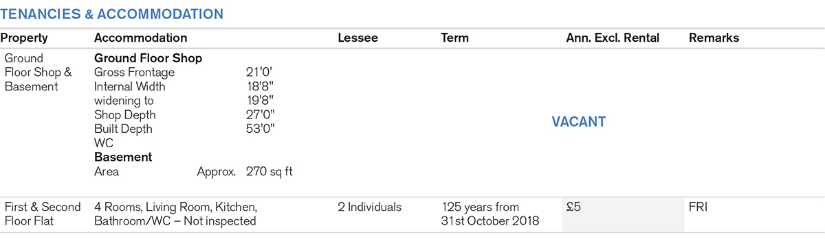 Forming part of a terraced parade of late Victorian buildings comprising a Large Ground Floor Shop with internal access to Basement Storage and separate rear access to a Self-Contained Flat on the two upper floors.