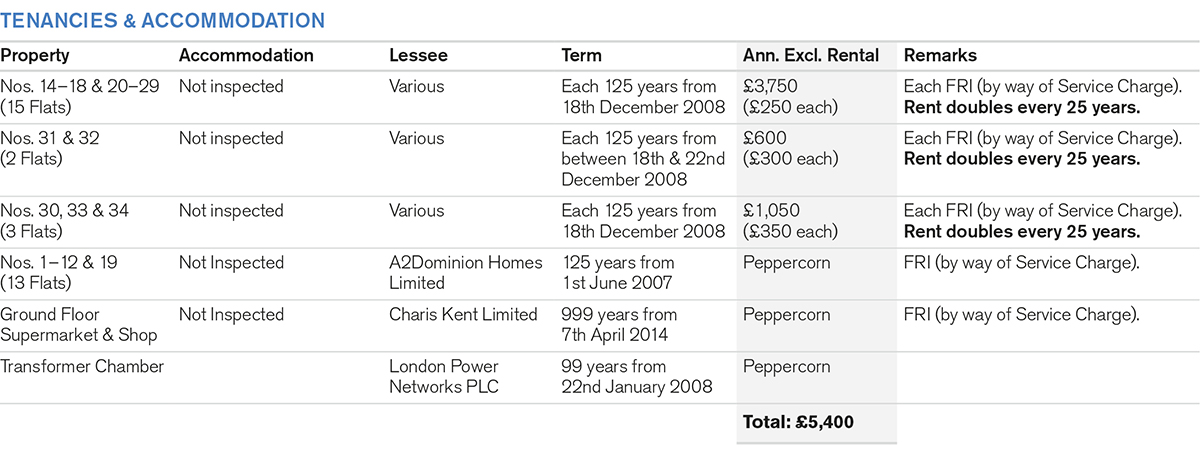 A substantial modern building comprising 33 Self-Contained Flats planned on first, second, third, fourth and fifth floors, a Ground Floor Supermarket and a Ground Floor Shop. The property also includes an Electricity Transformer Chamber.