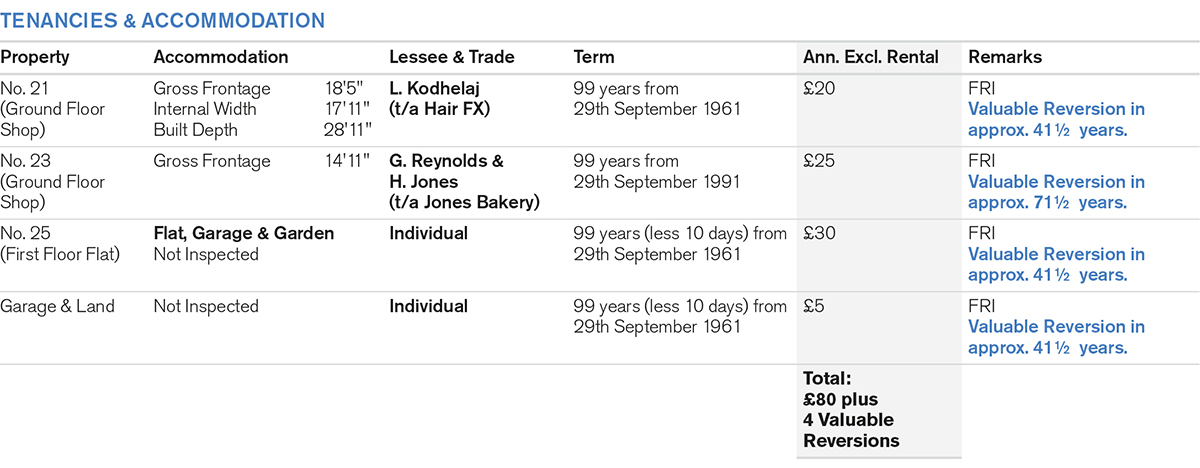 An end of terrace building comprising 2 Ground Floor Shops with separate side access to a Self-Contained Flat on the first floor. In addition, the property includes 1 Double Garage and a rear Yard/Garden.