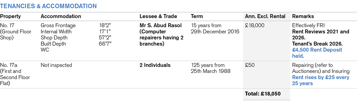 A mid terraced building comprising a Ground Floor Shop with separate rear access via a communal balcony to a Self-Contained Flat at first and second floor levels. In addition, the property includes a Rear Yard for parking/loading accessed via a service road.