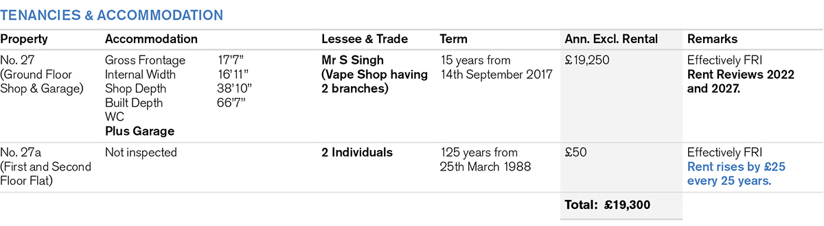 A mid terraced building comprising a Ground Floor Shop with separate rear access via a communal balcony to a Self-Contained Flat at first and second floor levels. In addition, the property includes a Rear Garage accessed via a service road.