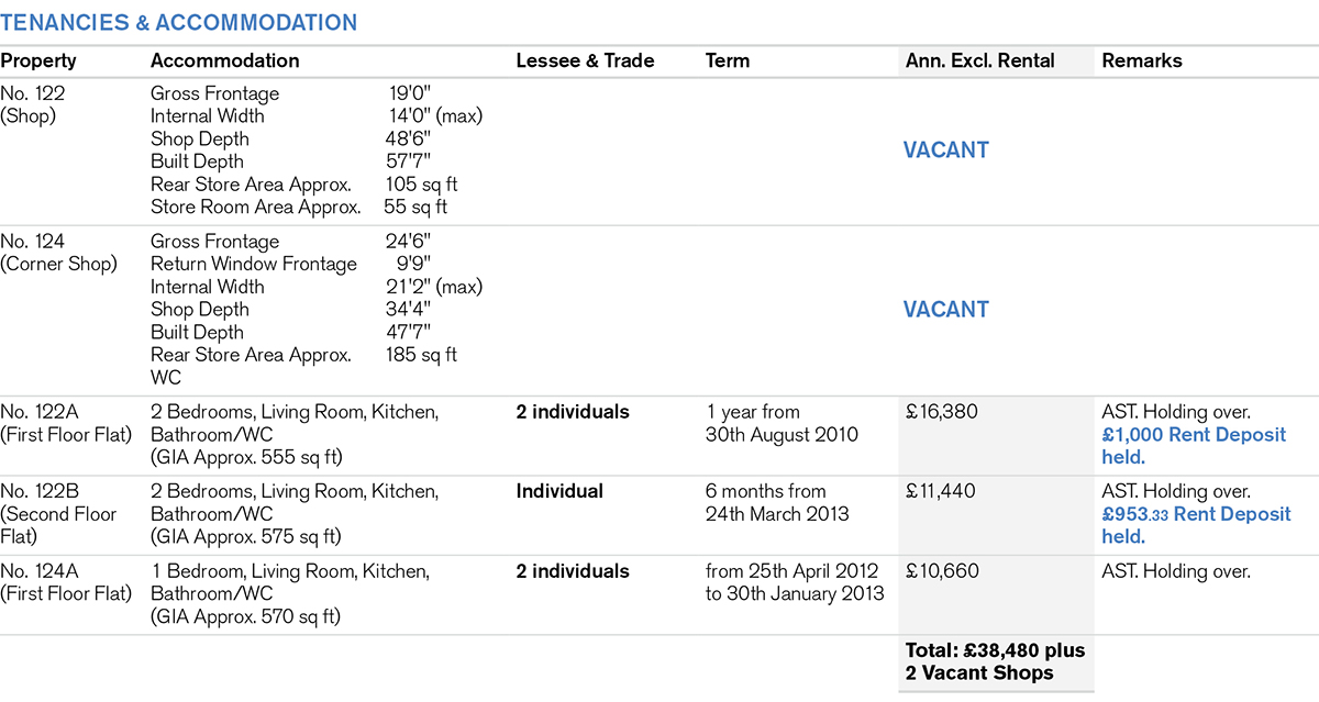 A substantial corner building comprising 2 interconnecting Ground Floor Shops with separate side access to 3 Self-Contained Flats on the first and second floors benefitting from double glazing and gas central heating (not tested).