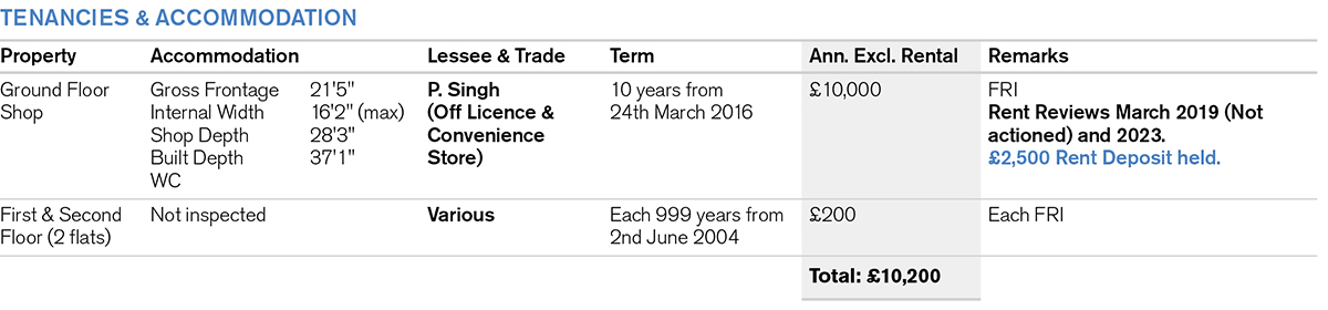 A mid-terraced building comprising a Ground Floor Shop with separate front access to 2 Self-Contained Flats on first and second floor levels.
