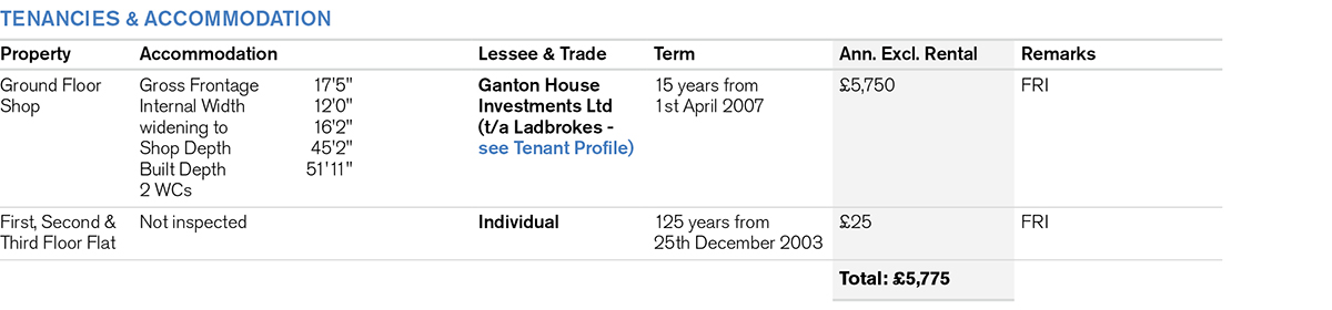 A mid terrace building comprising a Ground Floor Shop with separate front access to a Self-Contained Flat on the first, second and third floors.
