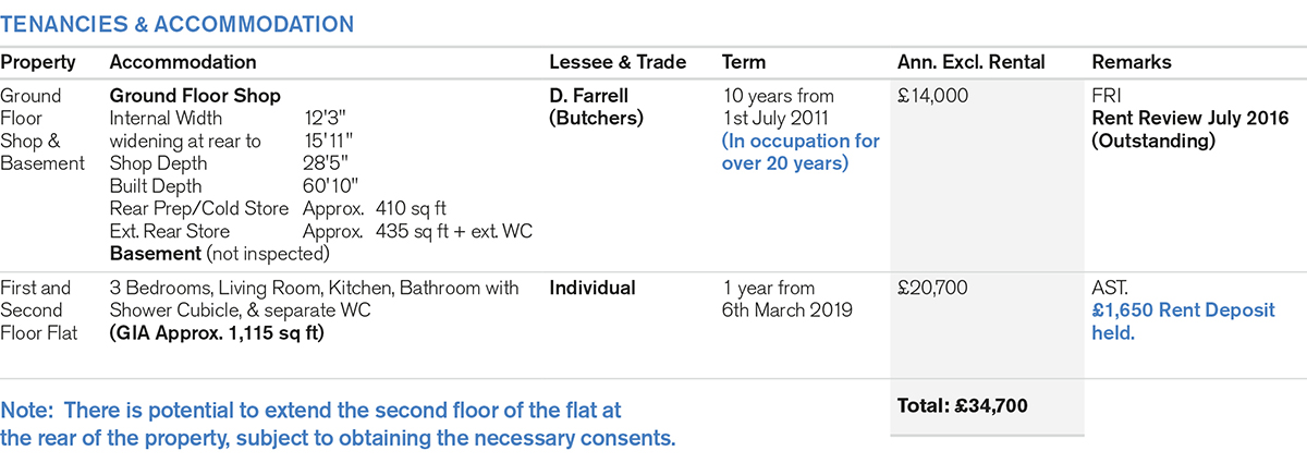 A mid terraced building comprising a Ground Floor Shop and Basement with separate front access to a Large Self-Contained Flat on the first and second floors (see Note).