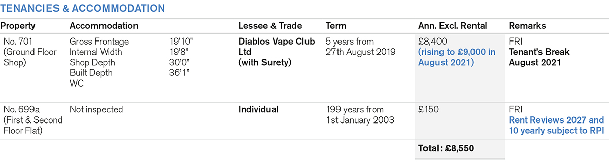 A mid terraced building comprising a Ground Floor Shop with separate rear access via a communal staircase to a Self-Contained Flat on the first and second floors.