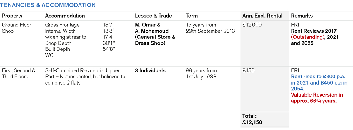 A mid terraced building comprising a Ground Floor Shop with separate front access to a Self-Contained Residential Upper Part on the first, second and third floors.