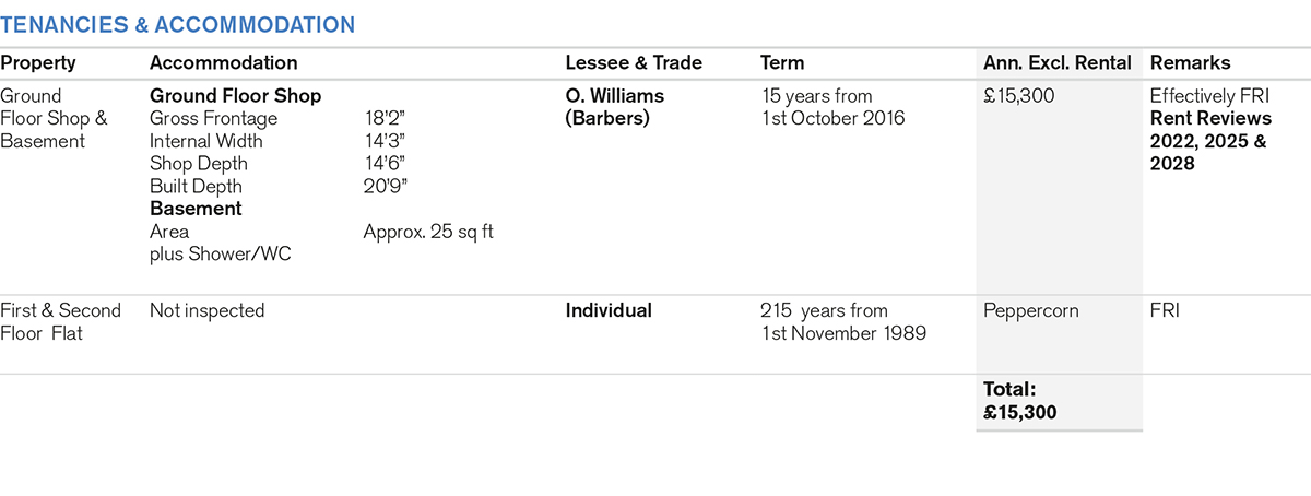 A mid-terrace building comprising a Ground Floor Shop and Basement with separate front access to a Self-Contained Flat on the first and second floors.