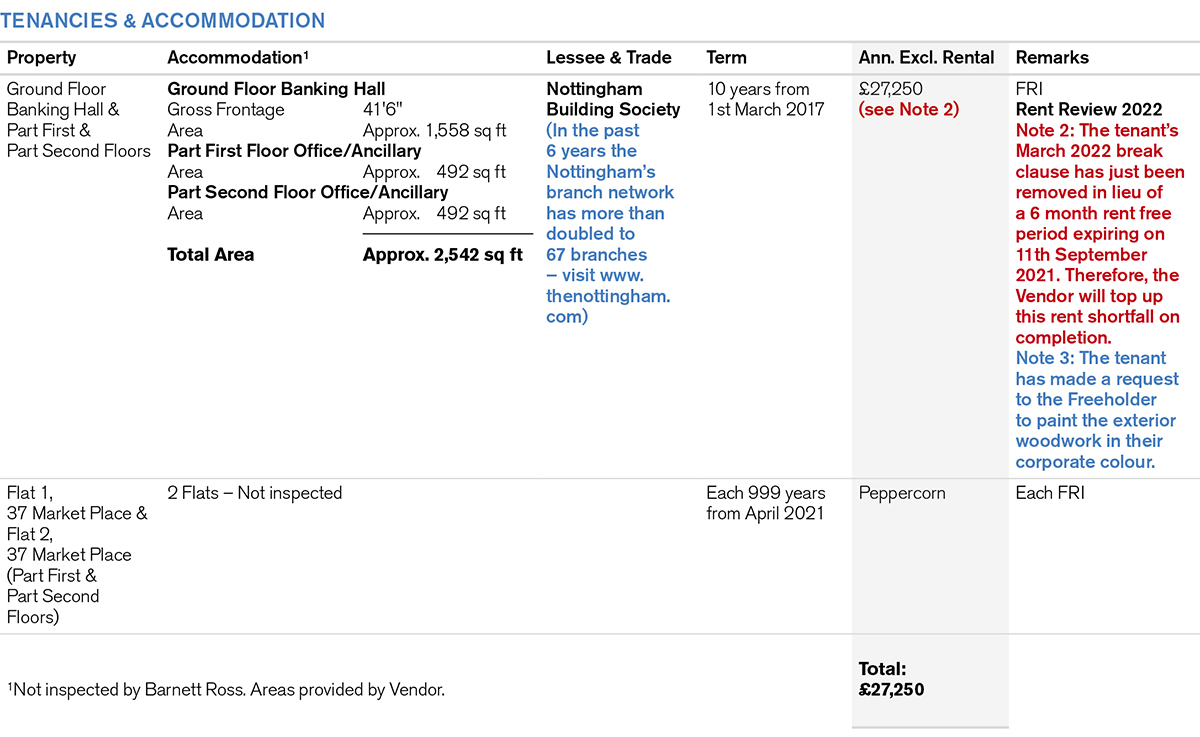 Comprising a Ground Floor Banking Hall with an extensive window frontage together with Office/Ancillary Accommodation on part first and part second floors. In addition, the property includes separate access to 2 Flats planned on part first and part second floors.