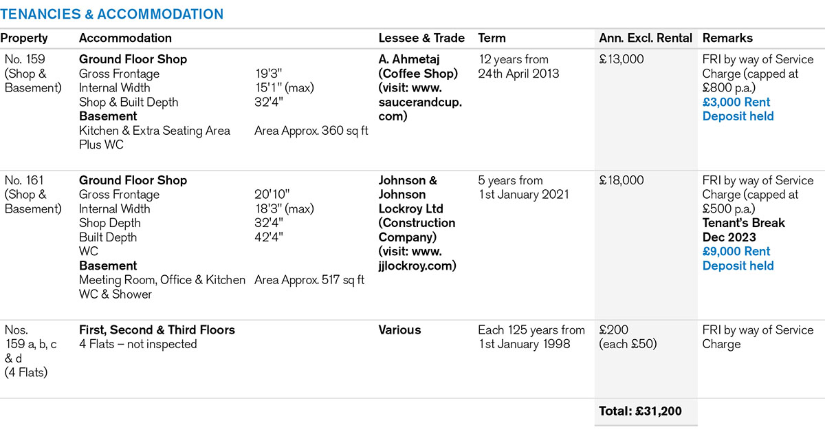 A pair of mid-terrace buildings comprising 2 Ground Floor Shops with Basements plus a shared separate front access to 4 Self-Contained Flats planned on the first, second and third floors.