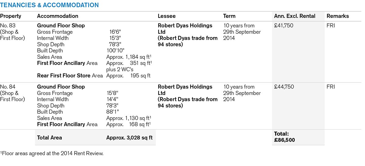 Two adjoining terraced buildings currently comprising a Deep Ground Floor Double Shop with internal access to Ancillary Accommodation on the first floor. In addition, there is a separate External Store at rear first floor level.