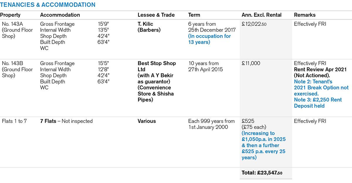 Note 1: In accordance with s5B of the Landlord & Tenant Act 1987, Notices have been served on the lessees and they have not reserved their rights of first refusal. This lot cannot be sold prior to the Auction.