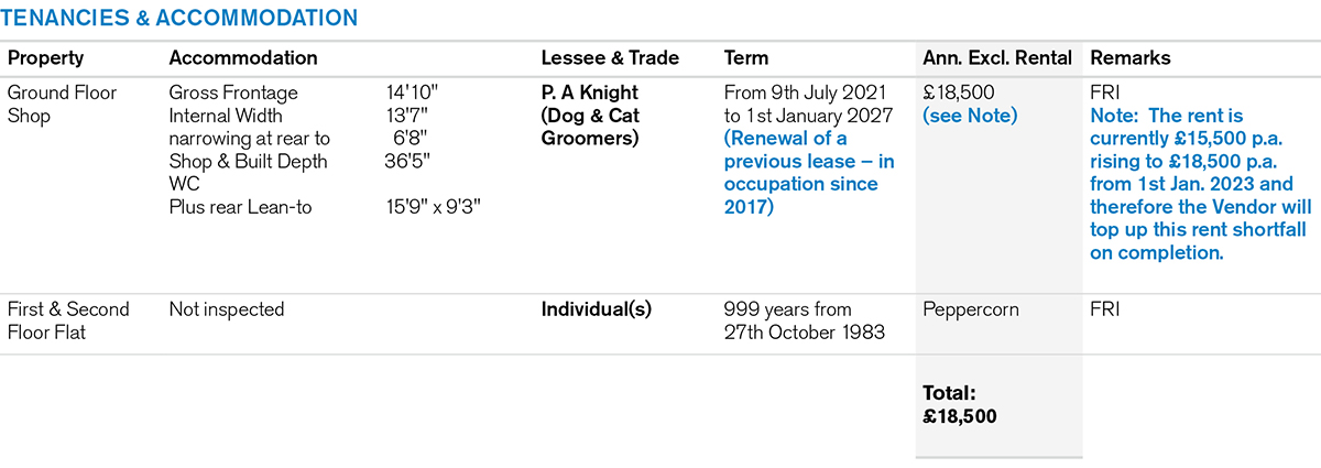 A mid terraced building comprising a Ground Floor Shop with separate rear access to a Self-Contained Flat on the first and second floors.