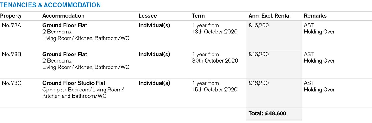 An end of terrace single storey building comprising 3 Self-Contained Flats (2 x 2 Bed and 1 x Studio) together with a Front Forecourt.
