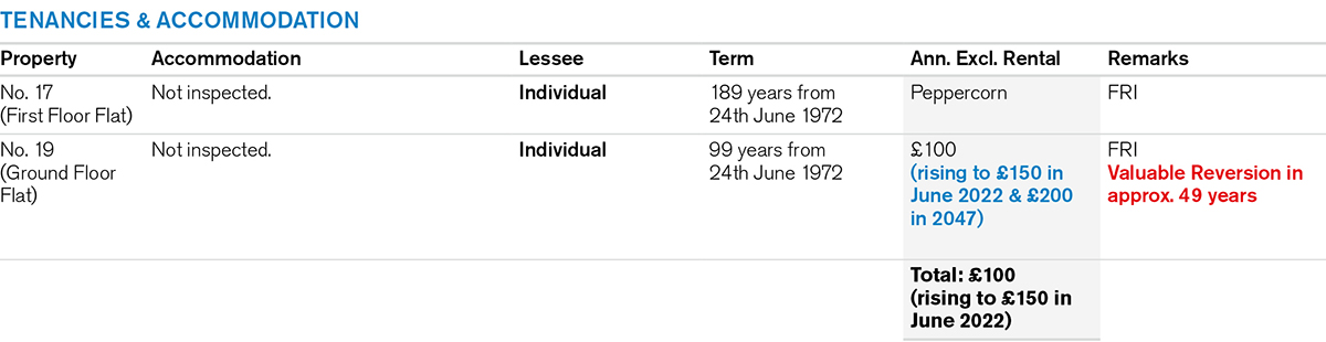 Note 1: The Lessee of No. 17 paid a premium of £55,028 in 2019 to extend the Lease.