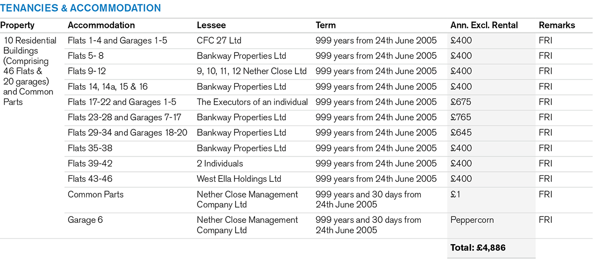 A private estate comprising: 10 Separate Residential Buildings (containing a total of 46 Self-Contained Flats) and 20 Garages together with the Common Parts to include the estate road, footpaths, parking spaces and communal lawns.