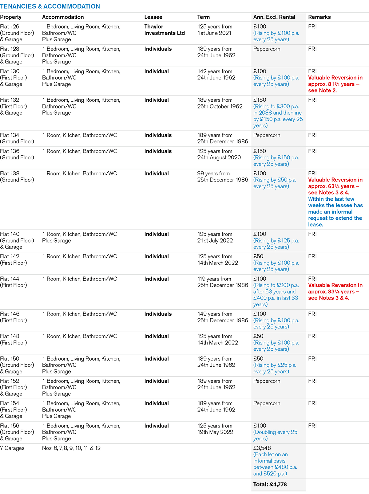 Freehold Residential Ground Rent Investment with 3 Valuable Reversions & 7 individually let Garages