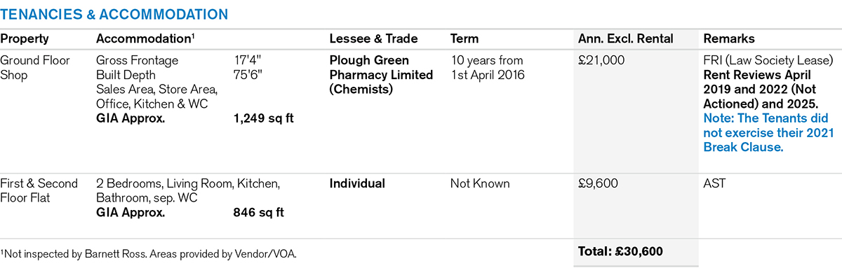 A mid terrace building with a Gross Frontage of 21'10" comprising a Ground Floor Shop with a Deep Rear Extension (20'3" wide) and separate front access to a Self-Contained 2 Bed Flat on the first and second floors.