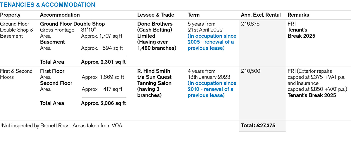 A mid terraced building comprising a Ground Floor Double Shop and a Basement together with separate front access to a Self-Contained Upper Part planned on the first and second floors.