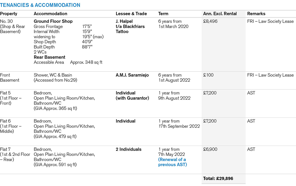 A mid terrace building comprising a Ground Floor Shop and Basement with separate front access (via No. 29a) to 3 Self-Contained Flats planned on first and second floors.