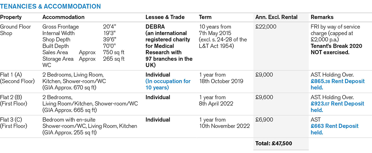 A mid terrace building comprising a Ground Floor Shop with separate gated rear access from Belmont Street to 3 Self-Contained Flats on first and second floors.